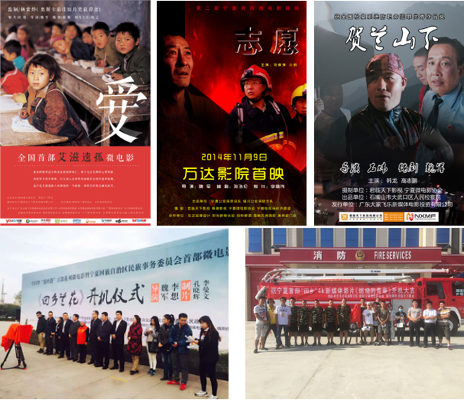 2014年拍攝了檢察院的《賀蘭山下》《黃河兒女》,消防總隊(duì)的《橙色閃耀寧夏川》《志愿》《石嘴山消防小蘋果》等,《志愿》作為第二屆寧夏消防微電影展映2014年11月7日在銀川西夏萬(wàn)達(dá)影院舉行首映,并在全區(qū)影院展映一個(gè)月。2015年5月11號(hào)由銀川市委宣傳部、共青團(tuán)銀川市委、銀川日?qǐng)?bào)、銀川晚報(bào)聯(lián)合舉辦的首屆“向上向善金河杯首屆微電影大賽”《志愿》榮獲全場(chǎng)一等獎(jiǎng),《賀蘭山下》榮獲二等獎(jiǎng),另《賀蘭山下》榮獲全國(guó)檢察系統(tǒng)防職務(wù)犯罪微電影優(yōu)秀作品獎(jiǎng)?!洞鷥r(jià)》反應(yīng)了一些違法份子通過(guò)制作及銷售假發(fā)票牟利,經(jīng)過(guò)地稅稽查局及公安的努力最終抓捕犯罪份子。與自治區(qū)民委合作拍攝了反應(yīng)回漢一家親親情感人民族題材作品《蘭香吳忠》。寧夏紀(jì)檢監(jiān)察系統(tǒng)首部廉政微電影《一家之主》推進(jìn)了黨風(fēng)廉政建設(shè)、加強(qiáng)和改進(jìn)廉政警示教育工作的新嘗試,做到以小見(jiàn)大,以影教人,以影化人的警示教育作用。首部艾滋遺孤公益微電影《愛(ài)》,講述是的患有艾滋病的患者因得不到及時(shí)有效的治療離開(kāi)人世,自己的孩子變成孤兒,被身邊人孤立、嫌棄的真實(shí)故事。從一個(gè)艾滋遺孤的生活歷程,講述了一個(gè)讓人心痛,值得人深思的故事。希望喚醒人們的良知,去關(guān)注艾滋病患者,幫助艾滋病患者。公益微電影《紅手絹》講述小男孩走出大山來(lái)到城市里上大學(xué),但是“紅手絹”卻是男孩心中唯一放不下的,當(dāng)男孩回到大山里卻發(fā)現(xiàn)一直牽掛的“紅手絹”不在了……